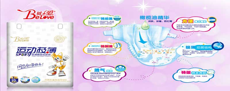 公司主要生產(chǎn)“貝+愛”、“卡比樂”牌系列的成人、嬰幼兒紙尿片、紙尿褲、媽咪兩用巾系列。系列產(chǎn)品從開發(fā)設(shè)計到生產(chǎn)應(yīng)用,均以先進的生產(chǎn)技術(shù)、成熟的生產(chǎn)工藝為依托,導(dǎo)入標(biāo)準(zhǔn)的產(chǎn)品質(zhì)量與生產(chǎn)流程管理體系,運用全面質(zhì)量管理方法,狠抓工藝流程,從原材料進廠、生產(chǎn)過程、成品入庫,實施全程品質(zhì)監(jiān)控。