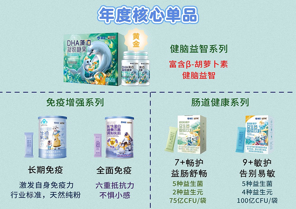 品牌名稱:海王星倍能 主營產(chǎn)品:海王星倍能藍帽軟膠囊,DHA,益生菌,乳鐵蛋白,鈣鐵鋅 品牌特色:海王星倍能嬰童營養(yǎng)保健品