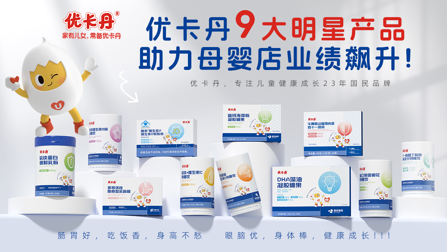2022 年,優(yōu)卡丹從健康出發(fā)布局大健康行業(yè),開啟“制藥+功能性母嬰”雙航母格局。優(yōu)卡丹同一份堅持應(yīng)用于未成年人大健康產(chǎn)品中,用嚴(yán)謹(jǐn)制藥標(biāo)準(zhǔn)定義功能性健康產(chǎn)品,專研更適合中國嬰幼兒和兒童青少年成長的保健食品、營養(yǎng)膳食、洗護(hù)日化、日常用品等家中常備功效調(diào)理型安心產(chǎn)品,全方位守護(hù)中國家庭兒女健康成長。醫(yī)研育養(yǎng),呵護(hù)成長,優(yōu)卡