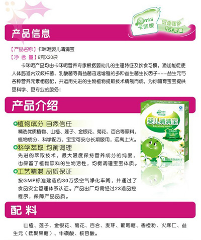 卡咪呢小兒板藍(lán)根顆粒是上?ㄟ淠啬笅胗闷酚邢薰酒煜庐a(chǎn)品,專為嬰幼兒設(shè)計(jì),專業(yè)、安全,幫助寶寶可以預(yù)防感冒抵抗病毒,是廣大父母育兒的好幫手?ㄟ淠匦喊逅{(lán)根顆粒不含任何色素、防腐劑,安全放心。