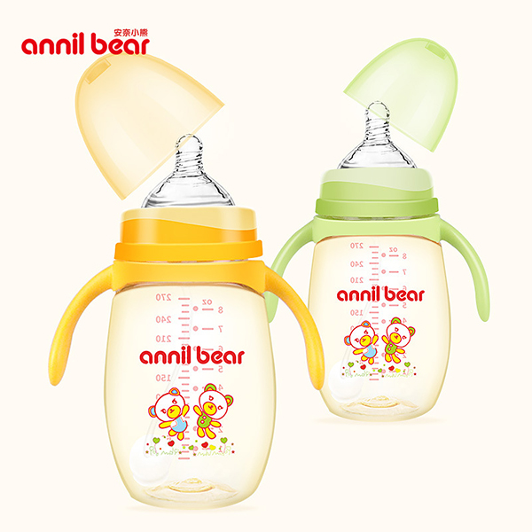 安奈小熊標(biāo)口PES奶瓶瓶身采用PES材質(zhì),質(zhì)地輕,耐高溫180度,安全無毒,不易破碎。