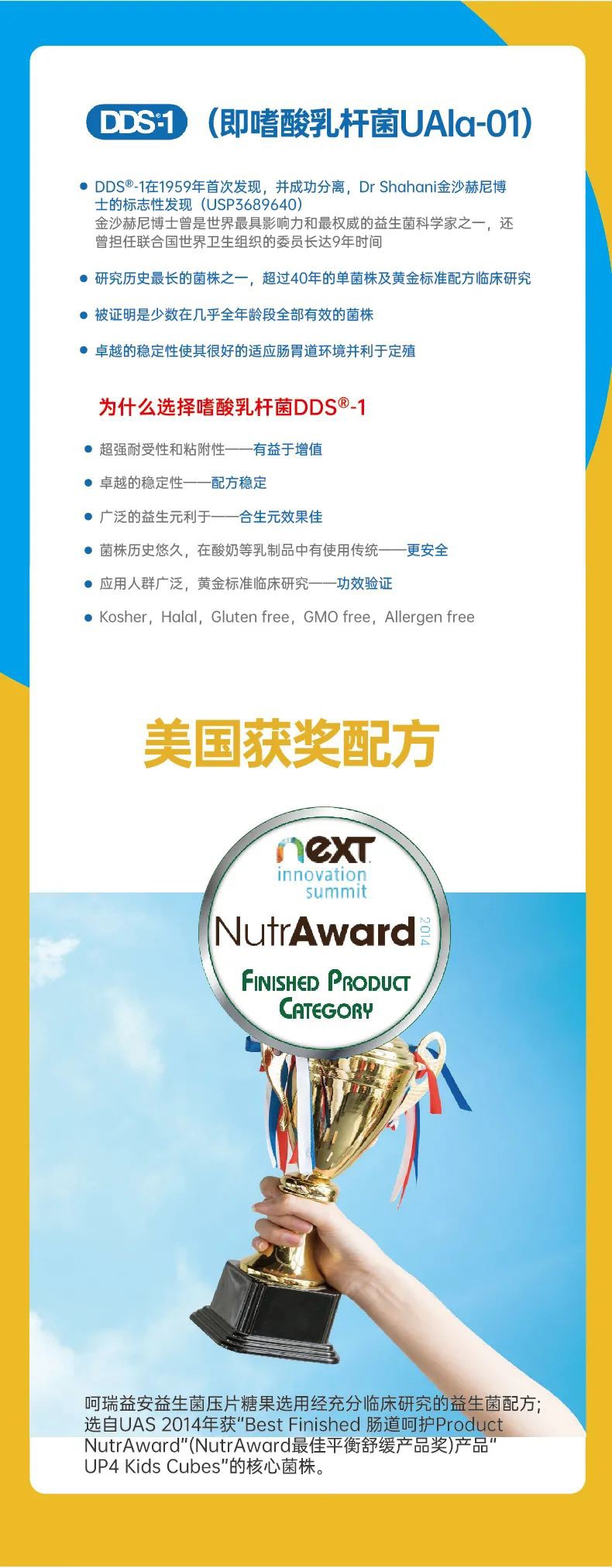 呵瑞益安益生菌壓片糖果,選用進(jìn)口菌株,菌株原料符合美國(guó)FDA GRAS要求,每片添加活菌數(shù)50億CFU,添加嗜酸乳桿菌UAla-01、乳雙歧桿菌UABla-01,高活菌量,香甜口感。四大自主工藝:低溫干燥風(fēng)冷壓片技術(shù),劑嵌式干燥斜插包裝技術(shù),自主造粒技術(shù),自主充氮包裝工藝;原料安全,認(rèn)證齊全,方便食用,無(wú)需冷藏。