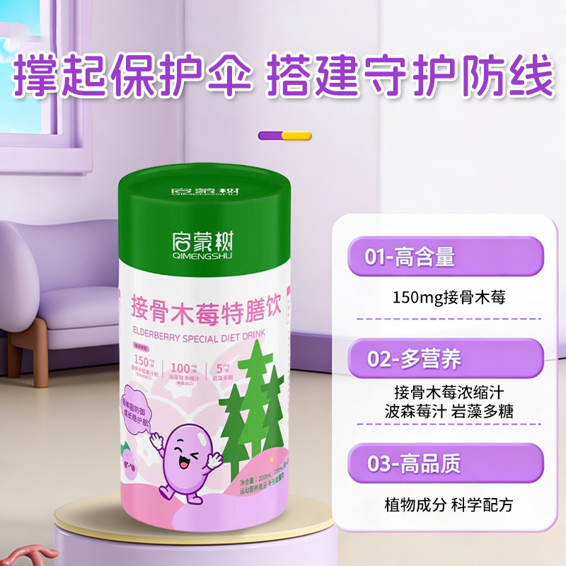 您所在位置:首頁>廣州啟蒙樹生物科技有限公司>啟蒙樹接骨木莓復合果莓特膳飲