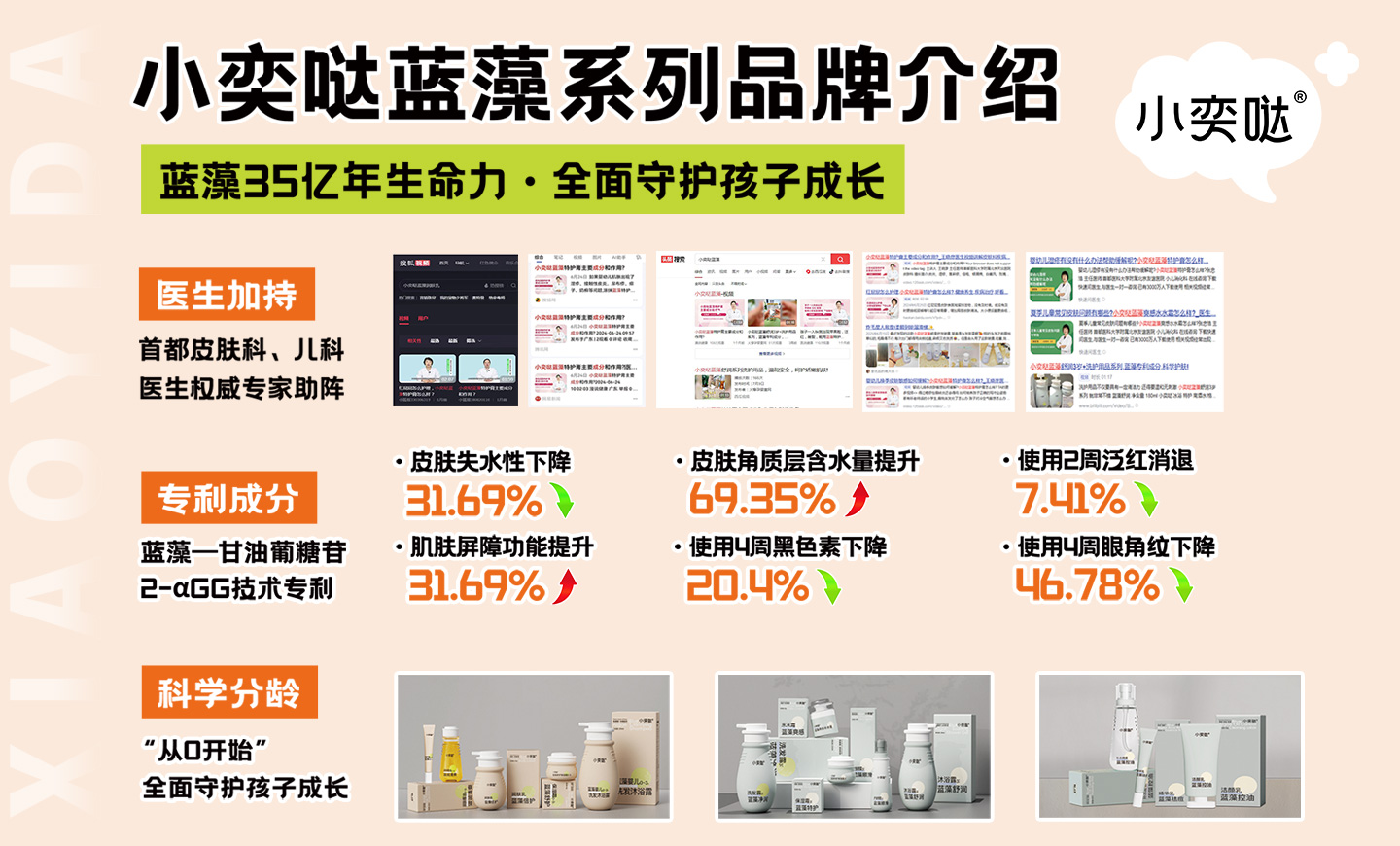 “小奕噠”是武漢達(dá)兒文生物科技有限公司旗下定位于嬰童保健與護(hù)理,擁有完全知識(shí)產(chǎn)權(quán)的品牌,該品牌產(chǎn)品由武漢達(dá)爾文設(shè)計(jì),“小奕噠”系列產(chǎn)品以純天然植物精華為產(chǎn)品原料,充分利用各種草本植物的作用機(jī)理科學(xué)組合配方,并發(fā)揮配方中各草本植物最大功效特點(diǎn),以先進(jìn)的提取工藝作為原料品質(zhì)保障,結(jié)合現(xiàn)代尖端設(shè)備和先進(jìn)的生產(chǎn)工藝、十萬(wàn)級(jí)無菌生產(chǎn)環(huán)境及完善的GMP體系作為產(chǎn)品的質(zhì)量保證。