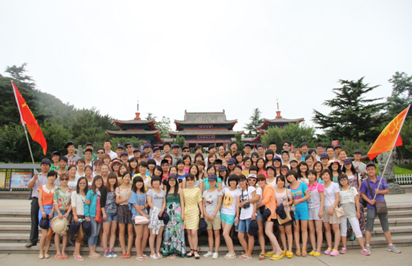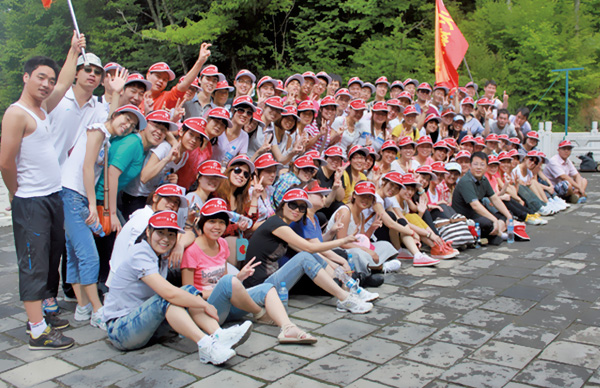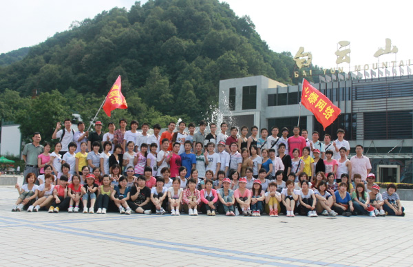 火爆網(wǎng)絡(luò)全體員工在白云山山腳下合影留念
