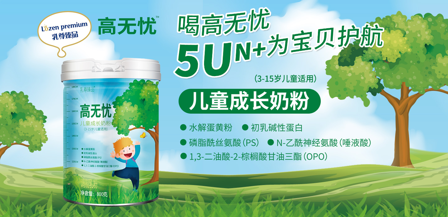 高無憂兒童成長奶粉,5U組合,全面均衡,助力體智活力齊發(fā)展。34種營養(yǎng),15種維生素,9種礦物質(zhì),全面均衡營養(yǎng),激發(fā)孩子全面成長力;(FOS+GOS+IMO)益生元+OPO組合,輕松消化營養(yǎng)好吸收;特添加CBP+水解蛋黃粉,激活骨骼生長原動力。濕法工藝,2小時(shí)鎖鮮,營養(yǎng)均勻,先進(jìn)工藝,鑄就高品質(zhì),給兒童帶來“一站式”營養(yǎng)補(bǔ)充,為廣大家庭提供更科學(xué)的哺喂方案。
