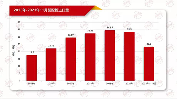 與零售價緩慢上漲相反的是今年奶粉產(chǎn)量呈下滑趨勢。據(jù)國家統(tǒng)計局?jǐn)?shù)據(jù),2021年1-10月,我國奶粉產(chǎn)量76.25萬噸,同比下降2.19%;而據(jù)海關(guān)數(shù)據(jù),2021年1-11月,我國嬰配粉進(jìn)口量23.3萬噸,較去年下降24.1%,進(jìn)口嬰配粉下滑較為嚴(yán)重。