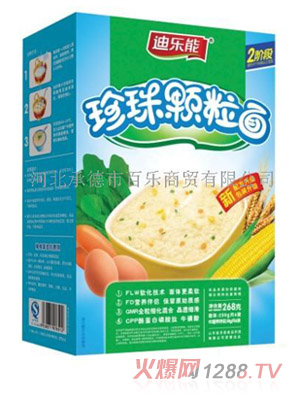 百樂食品商貿有限公司銷售的迪樂能珍珠顆粒面是專門針對嬰童的營養(yǎng)需求特點專業(yè)設計的嬰童營養(yǎng)食品。迪樂能珍珠顆粒面采用優(yōu)質材料,特別添加多種營養(yǎng)元素,能滿足寶寶生長所需的營養(yǎng)物質。迪樂能珍珠顆粒面以其專業(yè)科學的設計、豐富的營養(yǎng)元素、吸收好等特點深受廣大消費者的好評。