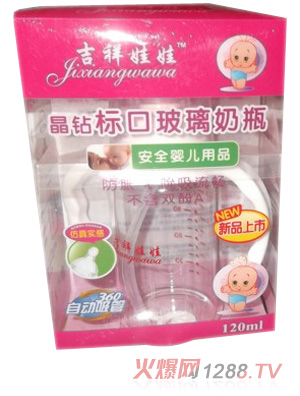 吉祥娃娃是香港吉祥娃娃嬰童用品有限公司的品牌,主營的產(chǎn)品主要有吉祥娃娃晶鉆玻璃標(biāo)口奶瓶、晶鉆玻璃寬口奶瓶、寬口玻璃防燙奶瓶、pp材質(zhì)奶瓶、嬰幼兒奶嘴等多個(gè)輔喂產(chǎn)品系列,設(shè)計(jì)美觀,使用方便,且物美價(jià)廉。